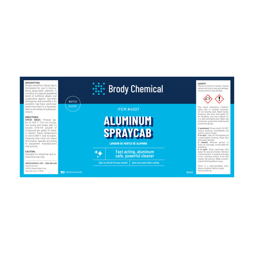 Brody’s Aluminum Spraycab is formulated for use in recirculating spray-wash cabinets. It consists of a special powdered blend of buffered alkalis, soil suspending agents, low-foam detergents, and emulsifiers. Excellent low-foaming properties. Can be used on all metals including aluminum. This product does not cause flash rusting.