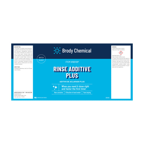 This product is a highly concentrated drying agent for the final rinse of all commercial automatic dishwashing machines. This product eliminates the surface tension of rinse water, removes soap and mineral deposits causing detergents and rinse water to drain freely. Fast drying action prevents water spotting. This product is noncorrosive to machines, effective in hard water, harmless to hands, dishes, glasses, utensils and is non-toxic in dilution solution. This is an economical formulation that can be diluted on site.
